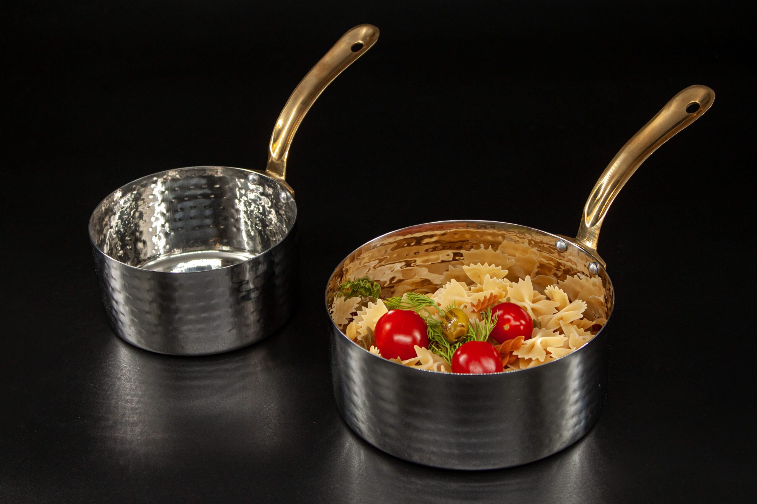 ظرف سرو استیل هندی گرد تک دسته کوچک کد 2010